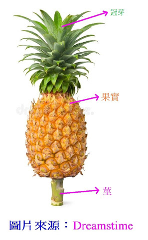 一般俗稱的菠蘿/鳳梨心(指菠蘿/鳳梨果肉中間位置的圓柱體),並不是菠蘿/鳳梨莖(指的是從菠蘿/鳳梨“根到果實”中間那一段),這外露的莖是不能直接當水果食用的部分。 |